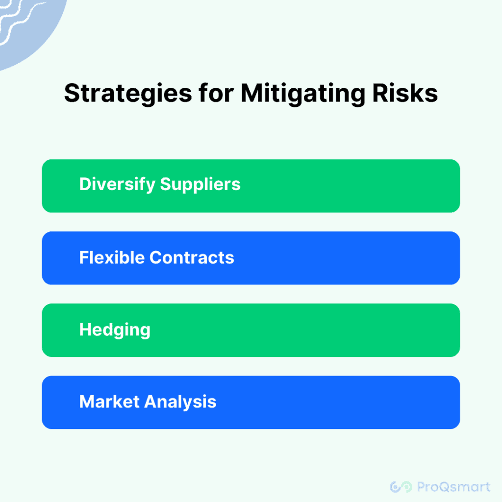 - Diversify Suppliers: By diversifying their supplier base, businesses can reduce their dependency on a single source for commodities, spreading the risk of price fluctuations.