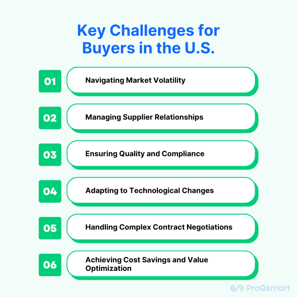 Procurement buyer play a pivotal role in the procurement process, facing a spectrum of challenges that require a strategic and proactive approach to overcome. By understanding these challenges and implementing effective strategies, buyers can enhance procurement outcomes, contribute to organizational success, and navigate the complex procurement landscape with confidence and expertise. In the ever-evolving market of the U.S., staying ahead in procurement means being adaptable, informed, and strategic in every decision and action taken.